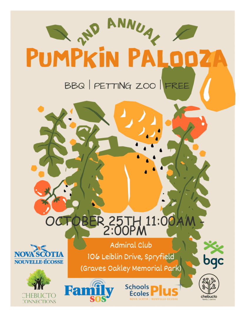 Get ready for our 2nd Annual Pumpkin Palooza on October 25th from 11 AM to 2 PM! This year’s pumpkin-packed fun happens at the Admiral Club, 106 Leiblin Drive, Spryfield (Graves Oakley Memorial Park) And the best part? It’s absolutely FREE!