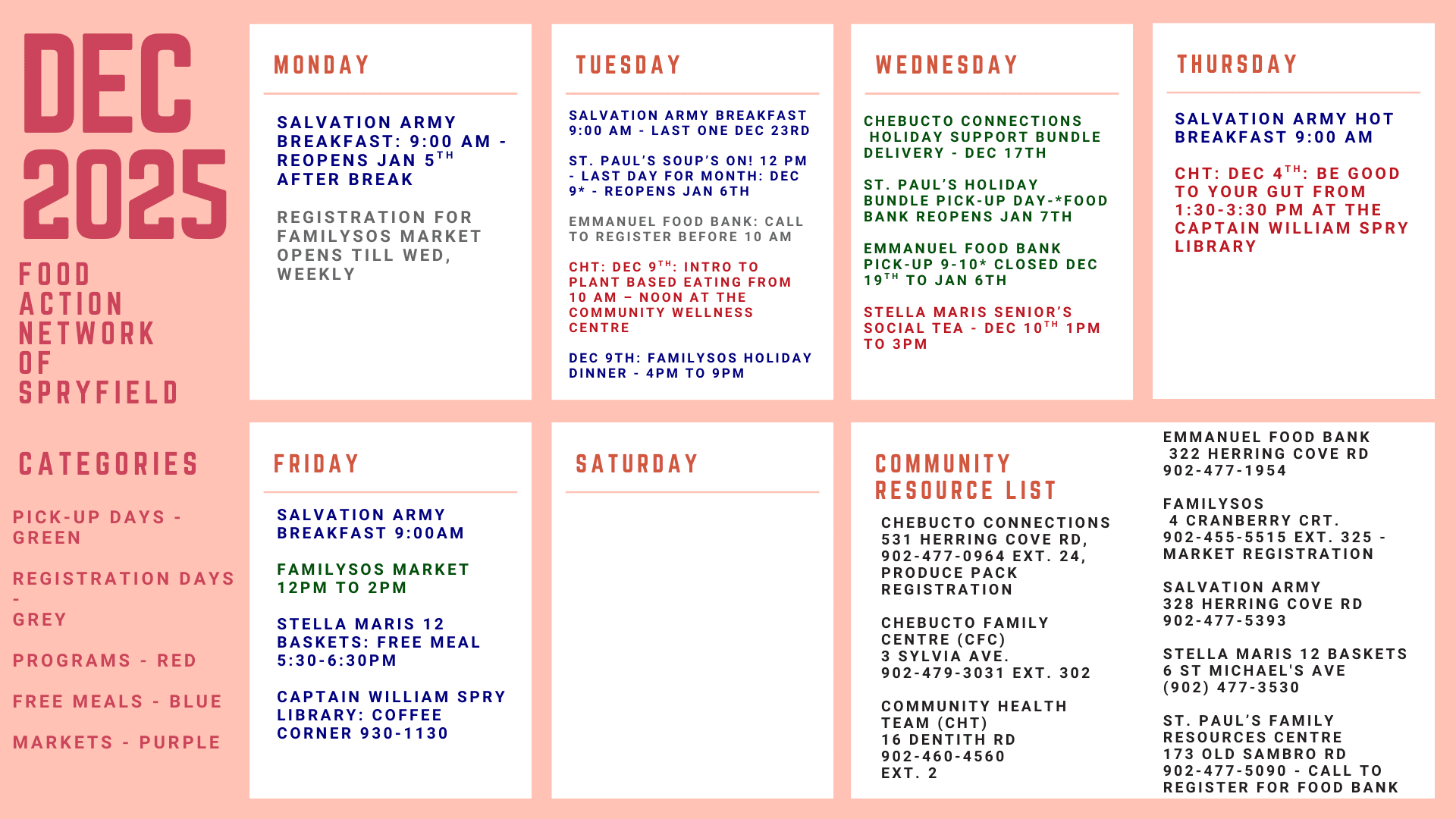 Food Action Network of Spryfield for the month of December