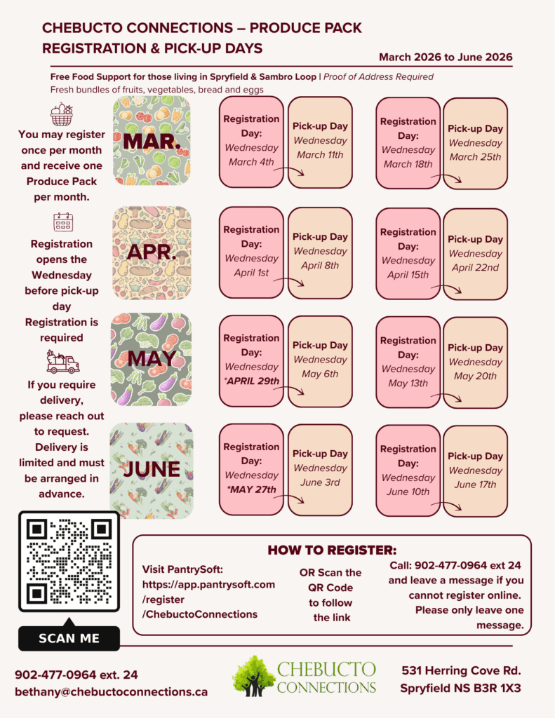 - Delivery is only available to those living in the Spryfield/Sambro Loop area with severe mobility concerns.