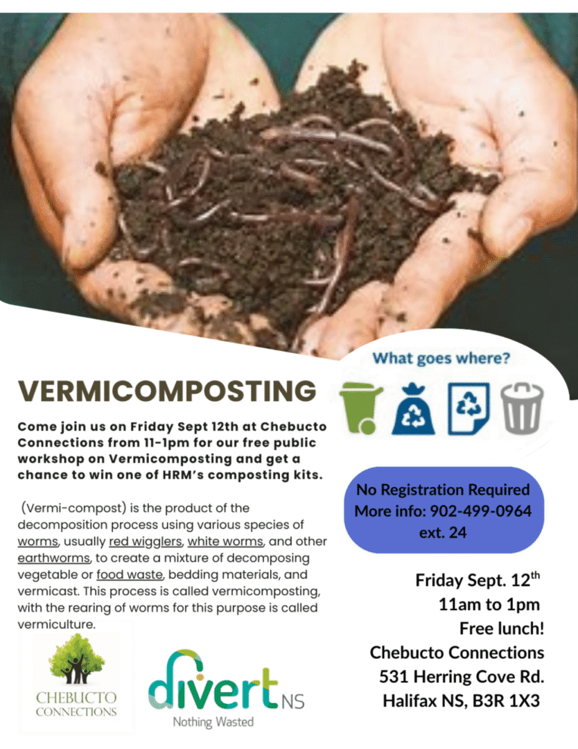 Vermicomposting Lunch and Learn on Friday, September 12th from 11am to 1pm.